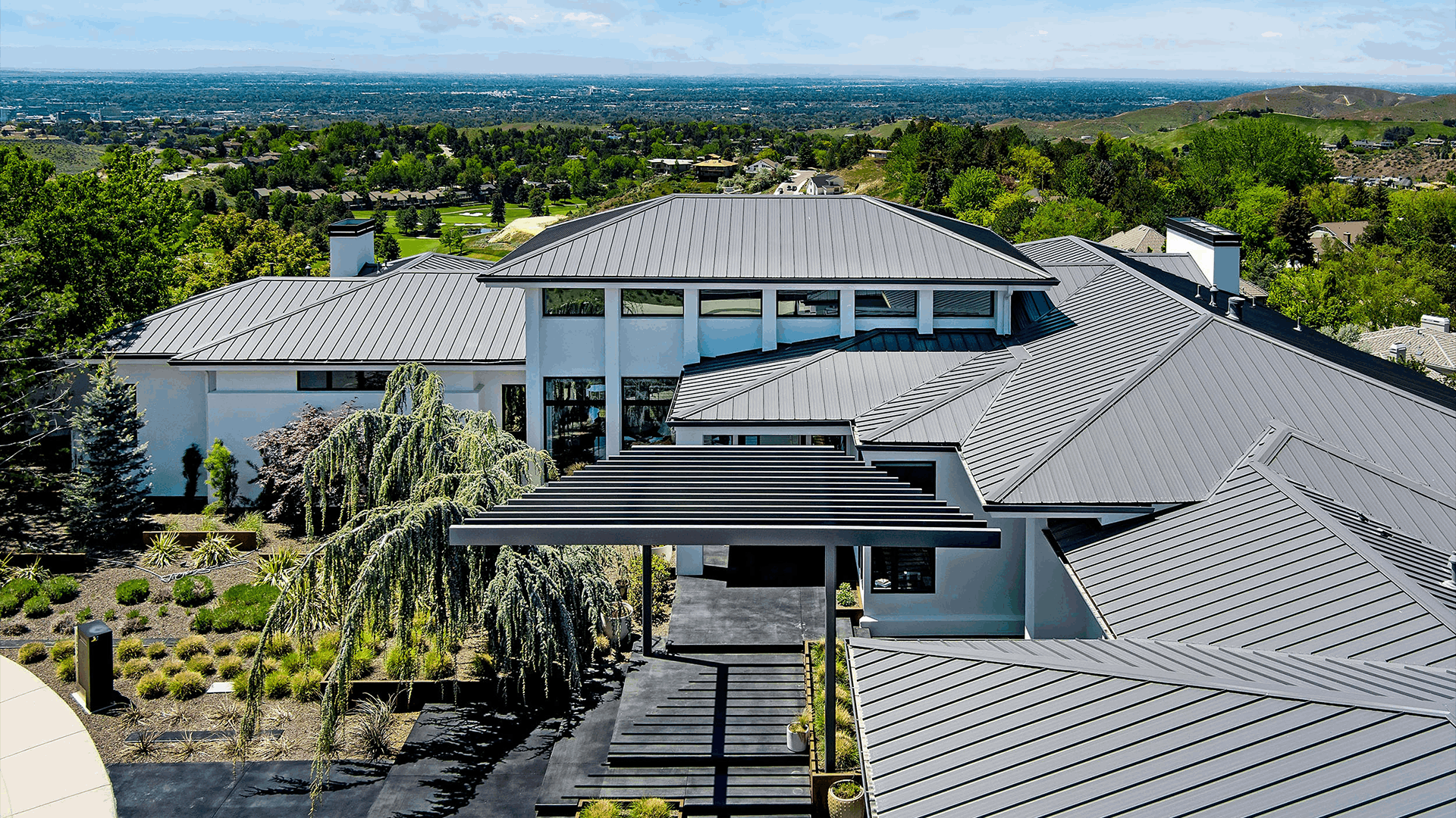 A striking fusion of worlds, Idaho’s rugged natural beauty and the sleek contemporary lines of California Modern design unite in this one-of-a-kind architectural masterpiece. Its placement in Boise’s coveted and privately gated Nines Ridge community is irreplaceable, with panoramic views stretching from the foothills and valley to the downtown skyline, Owyhee Mountains, and Boise Front—all captured from walls of glass and over 3,000 square feet of outdoor living space.